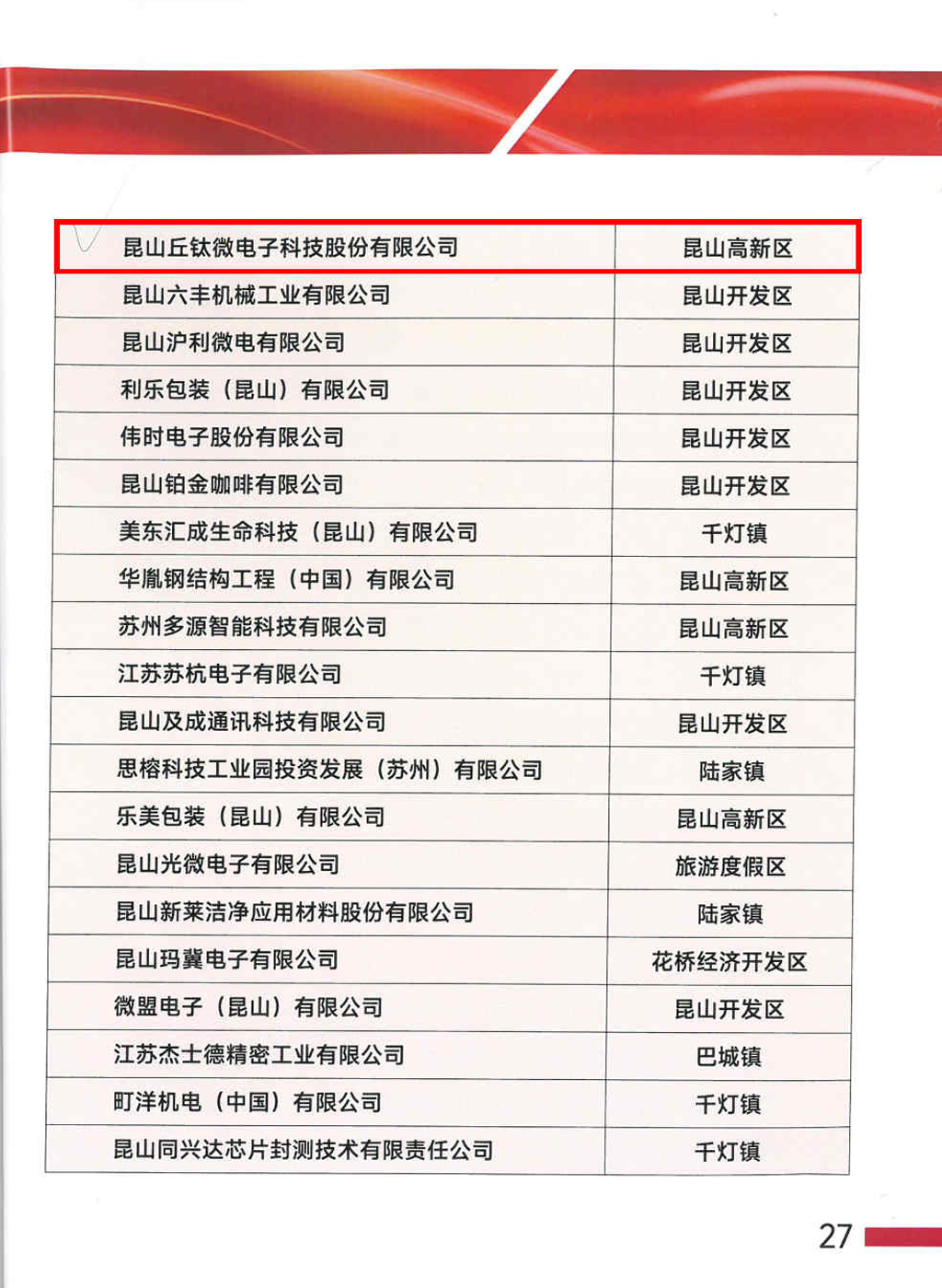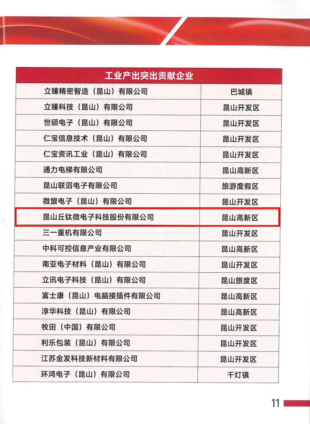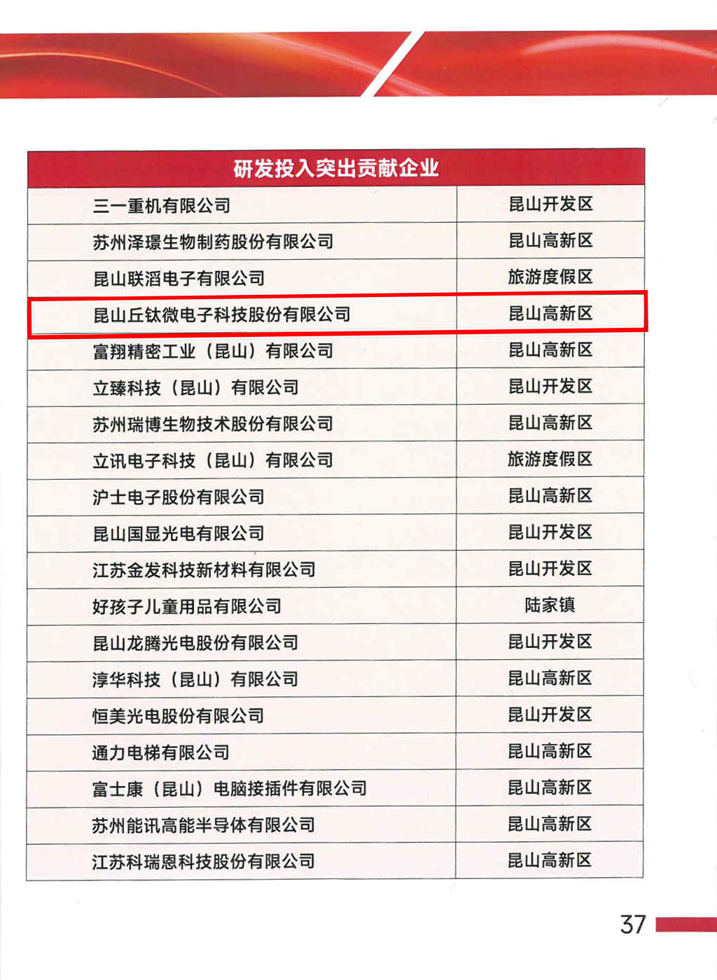 2024年2月底,中共昆山市委高新技術產業開發區工作委員會、昆山高新技術產業開發區管理委員會召開昆山高新區工作會議,會議通報了全區2023年度工作情況,總結成績、部署工作、表揚先進、鼓舞士氣。昆山丘鈦微電子科技股份有限公司榮獲2023年度“昆山高新區十佳規模效益企業”表彰。