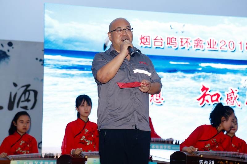 晚會在合作社理事長宋永的致辭中拉開帷幕。他強調,其一表示感謝:2018年市場經濟持續低迷,但鳴環還能朝氣蓬勃的發展,離不開用戶們、團隊們、親友們的鼎力支持;其二做出表態:雖然在生豬養殖的道路上仍然困難重重,但鳴環一定會堅持,并不斷轉型升級,盡力壯大牟平區生豬養殖事業。并著重強調晚會主題含義:“一個有夢想,懂感恩的團隊,他們一定會有一個美好的未來”。