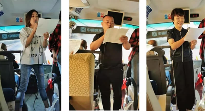 9月27日一大早集合,正式踏上“游賞沂蒙山區共慶祖國誕辰”之旅,路上我們齊唱《我和我的祖國》《團結就是力量》等歌曲,經過六個小時的車程,我們在中午順利到達沂南縣竹泉村。