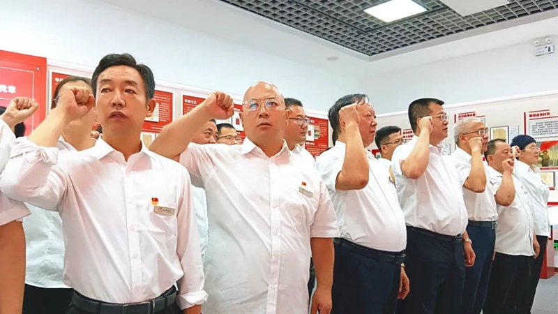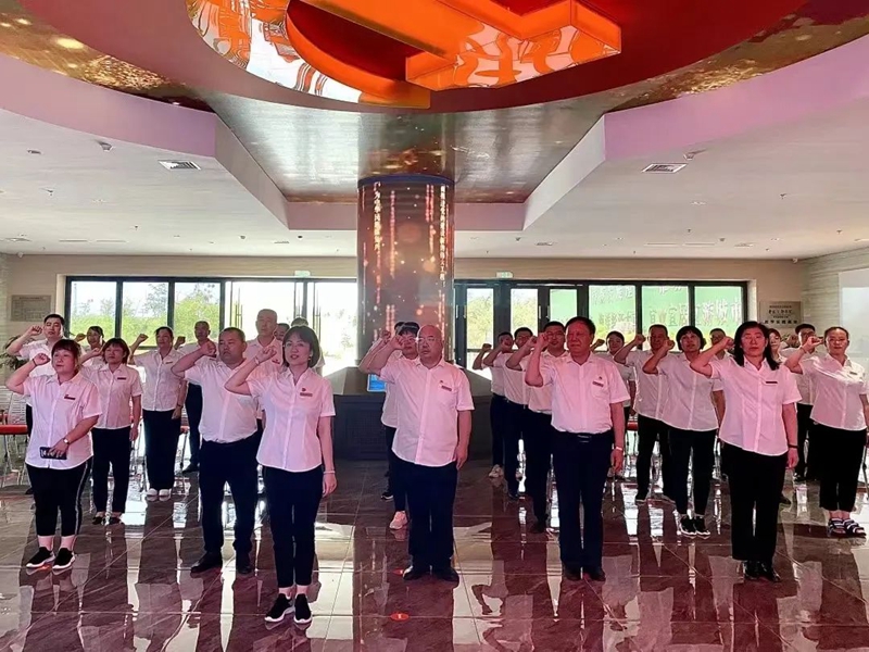 在黨支部書記王麗君的帶領下,全體黨員干部面向黨旗重溫入黨誓詞,提醒黨員干部要時刻牢記使命,不忘初心。