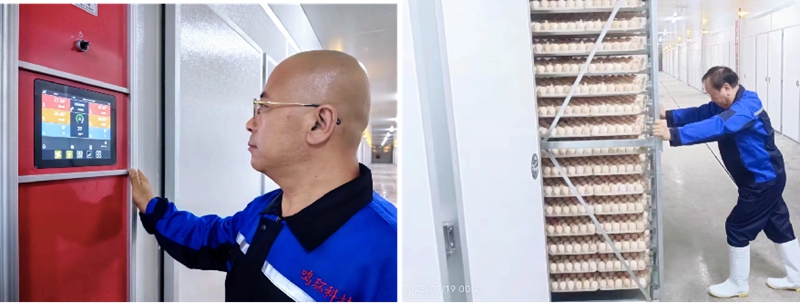 該批種蛋于2023年9月19日入孵,鳴環(huán)發(fā)展董事長宋永先生和總經(jīng)理孫惠軍先生先后按下孵化器啟動(dòng)按鈕并推入首批種蛋。