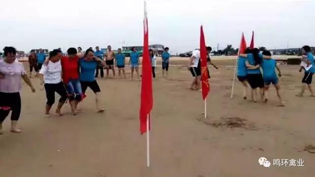 2017年8月19日下午,鳴環(huán)禽業(yè)在牟平區(qū)養(yǎng)馬島海水浴場組織沙灘拓展活動,來自種禽生產(chǎn)部、孵化廠、蓬萊分社、鳴達(dá)合作社、鳴康動物醫(yī)院及合作社各部門的50多名選手參加了此次活動。比賽項目有皮劃艇比賽、“三人四足”等,進(jìn)一步激發(fā)了員工的團(tuán)隊協(xié)作精神。
