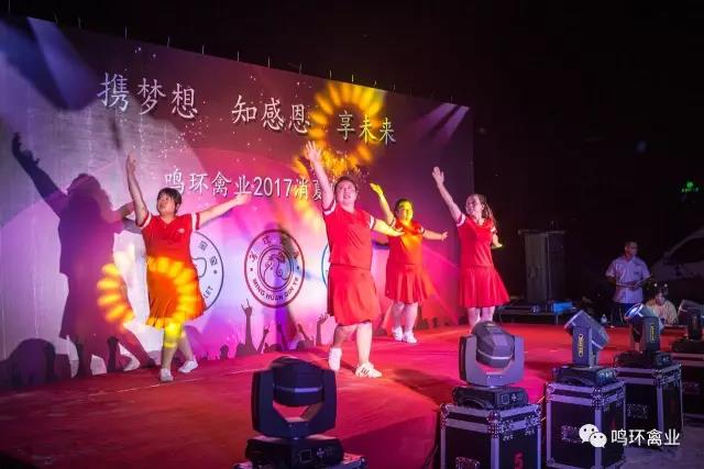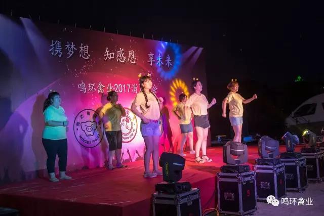 晚上18:58分,鳴環(huán)禽業(yè)2017年“攜夢想 知感恩 享未來”消夏晚會正式開始,鳴環(huán)禽業(yè)的親友團(tuán)及公司員工、家屬等200余人參加了晚會。