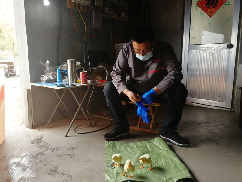 一、勤勤懇懇,盡職盡責(zé)。熟悉他的人都知道,不論何時(shí)何地,他始終嚴(yán)格要求自己,雨里搶,霧里拼,真正做到高標(biāo)準(zhǔn)、嚴(yán)要求。單從張老師的出診打卡記錄來看,早到凌晨四五點(diǎn),晚到夜里十一、二點(diǎn)都有他工作的痕跡,他熱情和氣、耐心細(xì)微,只要家庭農(nóng)場(chǎng)有需求,他二話不說就往養(yǎng)殖者家里趕。不僅如此,張老師每天晚上下班后,還定期在鳴康動(dòng)物醫(yī)院肉雞養(yǎng)殖交流群內(nèi)分享養(yǎng)雞的技術(shù),將近期遇到的病癥及處理方法詳詳細(xì)細(xì)的講給養(yǎng)殖者聽,并回答他們提出的問題,真正做到了技術(shù)過硬,服務(wù)到家。