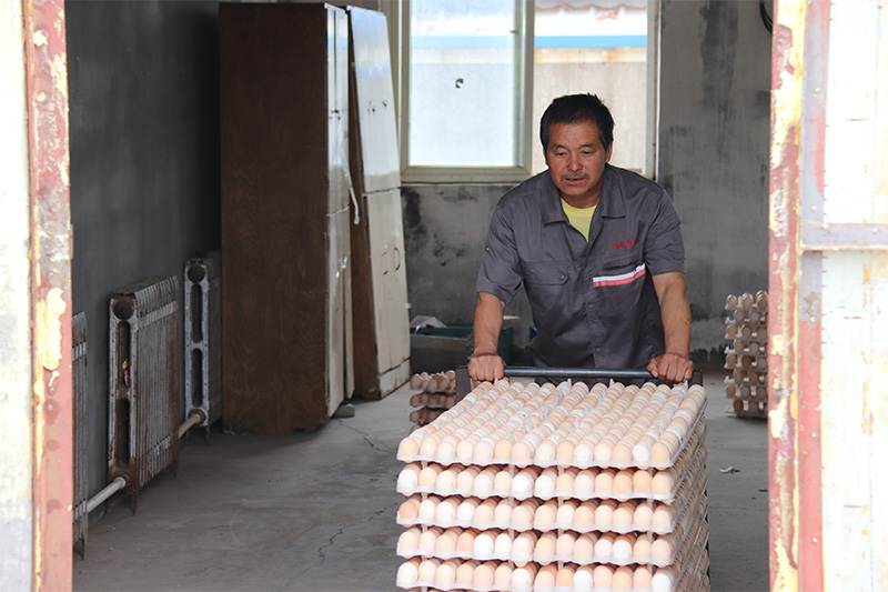 劉濤勛常說的一句話說:“自己養的雞,自己真的心疼。”他是如此說的,也是如此做的。正值產蛋高峰期,棚中時常會出現公雞把母雞抓傷的情況,劉濤勛及其妻子便不定時到棚里看看,遇到有受傷的母雞,便會把她們抓到前面來養護,受傷的地方給上些碘酒,讓這些孩子們能盡快好起來。