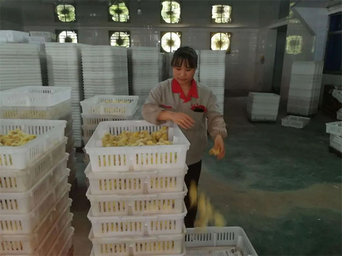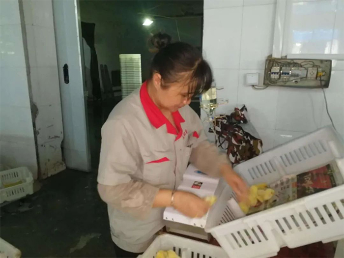 工作中,張莉與照蛋組的家人們右手持燈逐個逐行地照,左手將無精蛋、弱精蛋、死精蛋、臭蛋、破蛋等挑出放在身旁的紙箱里,將小頭朝上的蛋翻過來,照蛋過程頭腦、動作反應要快,對某個種蛋的觀察、判斷要在一瞬間完成,做到 “輕、穩、準、快”。張莉帶領的照蛋組為減少細菌污染胚蛋、提高孵化率和雛雞質量、合理利用設備、準確推測孵化效果及種雞的生產狀態打下堅實的基礎。