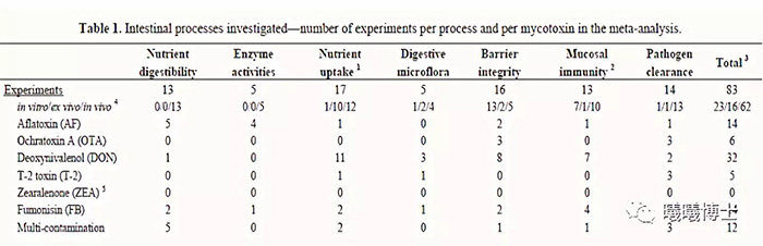 關于這點,我讀博士時的一位師兄和我的導師曾發表過一篇非常詳盡的綜述(全文我附在文末原文鏈接里,大家有興趣可以去讀一讀)。文中提到,截止到2013年,僅有83篇發表文章報道了霉菌毒素對腸道的影響,而這83篇,包括了所有的霉菌毒素,所有的動物種類,還包括了體外實驗。可想而知,這里還有很多空白需要填補。
