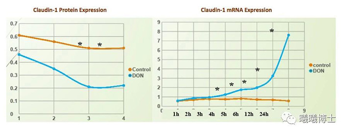 嘔吐毒素DON對claudin-1的蛋白表達和mRNA表達的影響